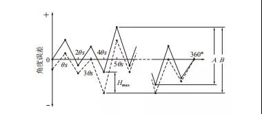 ◎步進(jìn)角誤差(相鄰角誤差)與靜止角誤差相同,使馬達(dá)旋轉(zhuǎn)一周,測量每次步進(jìn)轉(zhuǎn)中角位置的理論值和實(shí)際值的偏差,取其中正負(fù)雙方向各自的最大角度差,即步進(jìn)角誤差(相鄰角誤差)。