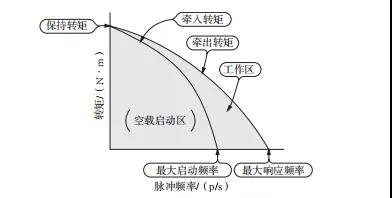 步進(jìn)電機(jī)的轉(zhuǎn)速取決于驅(qū)動脈沖的頻率,因此速度-轉(zhuǎn)矩特性又稱轉(zhuǎn)矩-頻率特性。這一特性相當(dāng)于普通直流電機(jī)的轉(zhuǎn)速-轉(zhuǎn)矩特性。在普通直流電機(jī)轉(zhuǎn)速-轉(zhuǎn)矩特性圖中,橫軸為轉(zhuǎn)矩,縱軸為轉(zhuǎn)速。但在步進(jìn)電機(jī)中,一般橫軸為脈沖頻率,縱軸為扭矩,如圖3所示。我們可以看到一個(gè)空載啟動區(qū),對電機(jī)施加這個(gè)范圍內(nèi)的頻率和扭矩,電機(jī)可以正常啟動并同步旋轉(zhuǎn)。另外,在空載啟動區(qū)運(yùn)行的馬達(dá)繼續(xù)增加扭矩和輸入頻率時(shí),馬達(dá)可以看到不會失步的旋轉(zhuǎn)范圍。其上限頻率稱為最大響應(yīng)頻率。該特性隨著驅(qū)動電路和負(fù)荷的旋轉(zhuǎn)慣性發(fā)生了很大變化。