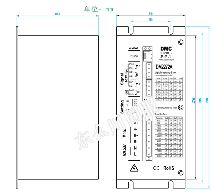 型號:DM2272A 名稱:DM2272A高壓兩相步進電機驅動器 簡介: