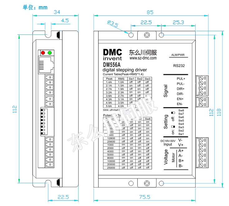型號:DM556A 名稱:DM556A低壓兩相步進驅動 簡介: