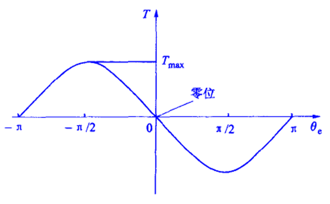 失調(diào)角——轉(zhuǎn)子偏離零位線的夾角qe,失調(diào)角是在齒距角范圍內(nèi)變化的,為了表示方便,將齒距角的范圍看成2p電角度。